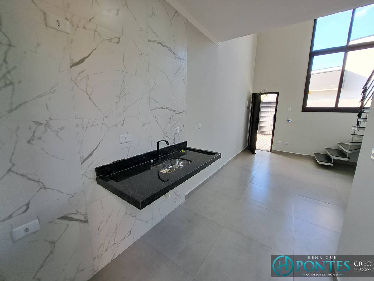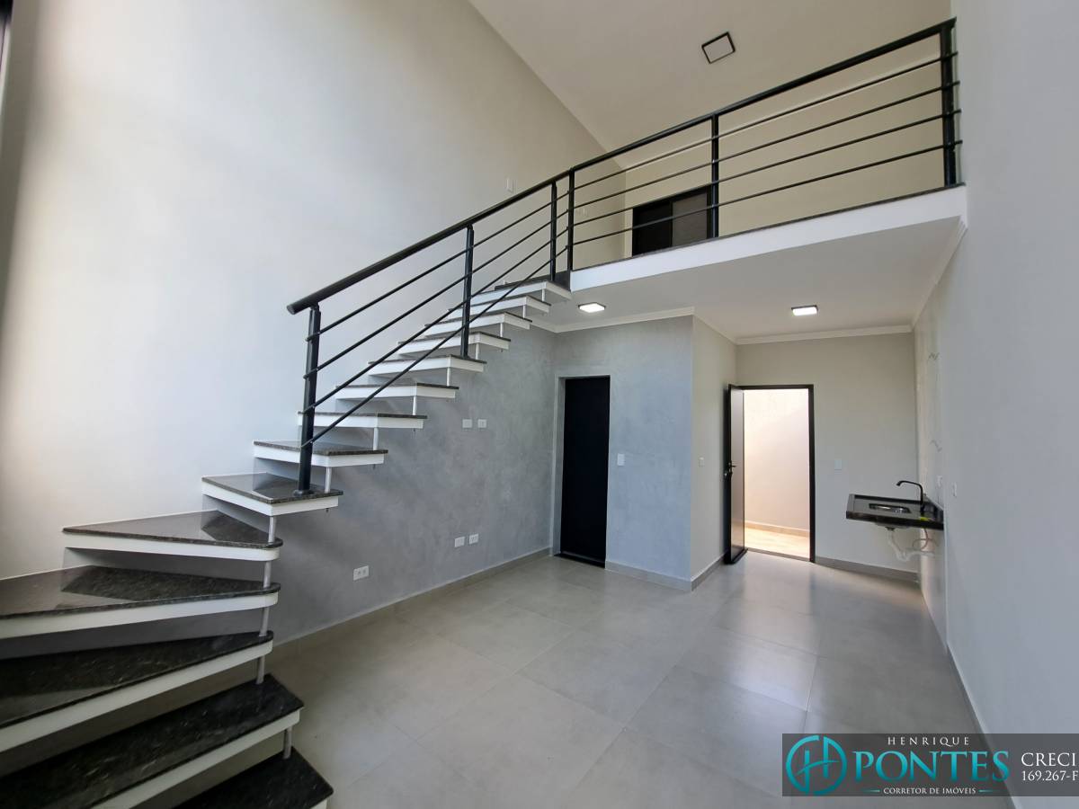 Sala com Pé Direito Alto, Cozinha Americana, Banheiro com Box de Vidro, Área de Serviço e Dormitório no Pavimento Superior