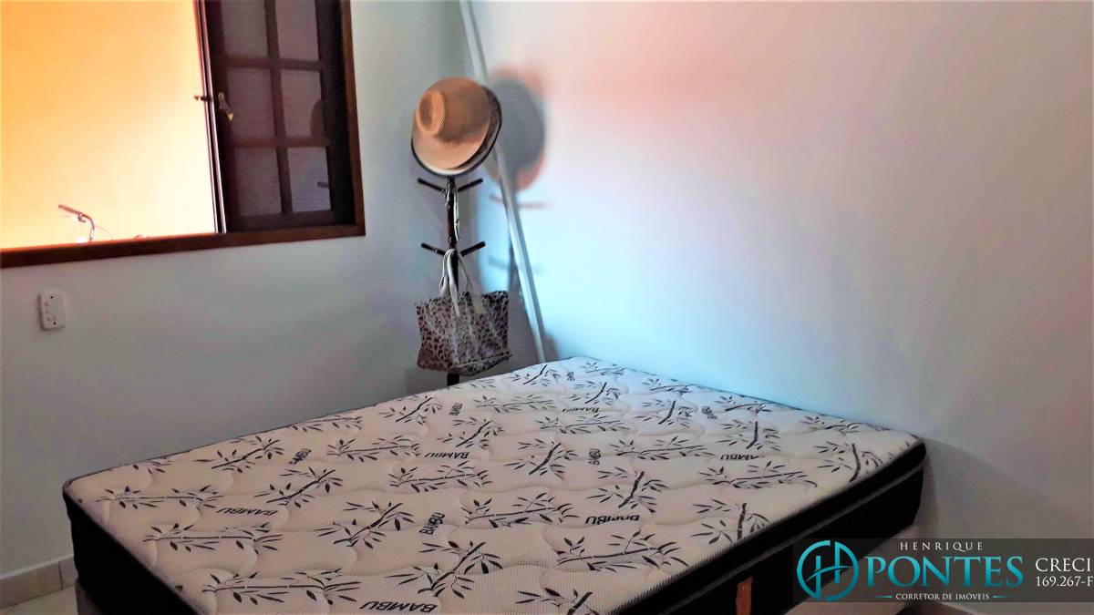 Edícula com 1 dormitório com cama de casal e solteiro e 3 colchões de solteiro.