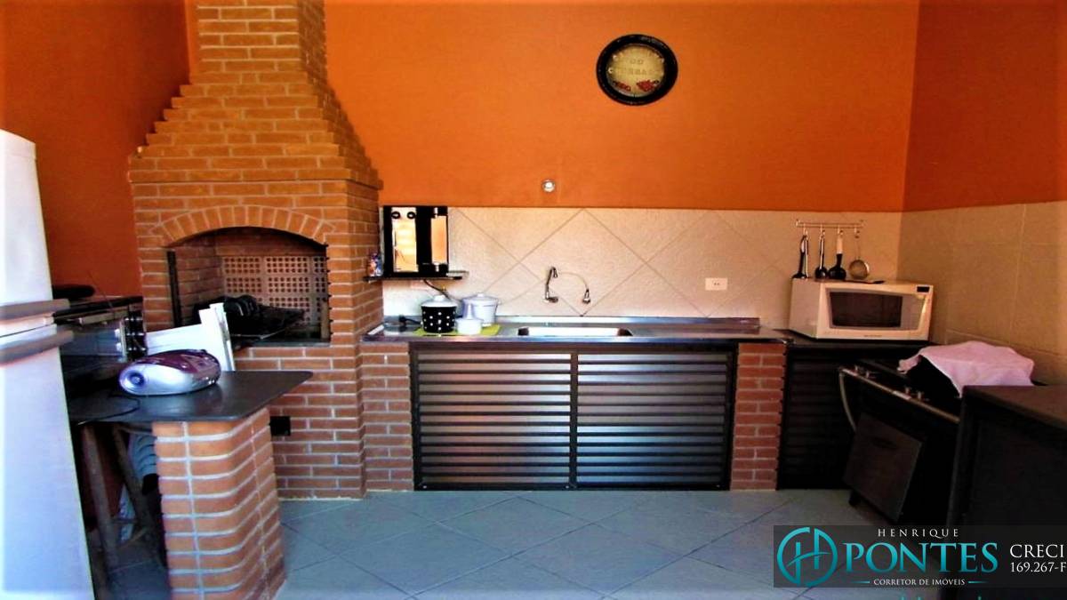 Área Gourmet Fechada com Vidro e Coberta, com cozinha completa, fogão industrial com chapa de churrasco, churrasqueira com grelha e todos os itens de churrasco, geladeira, microondas, filtro de água elétrico, air fryer e todos os itens de cozinha.